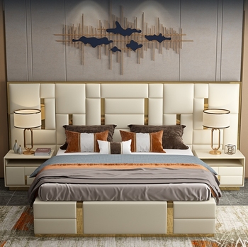 Benutzer definierte moderne High-End-Luxus-Doppelbett Massivholz möbel Große hoch gepolsterte Betten Soft-Pack Lagerung Schlafzimmer Hotel Villa