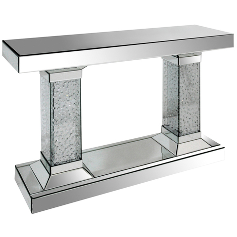 Mesa de consola rectangular de diamante triturado con espejo de plata moderna con espejo de pared de salón para muebles de sala de estar
