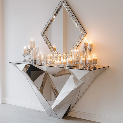 Mesa de consola con espejo de diamante de cristal gris negro moderno