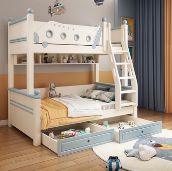 Meubles pour enfants, lit mezzanine en bois, lit superposé pour chambre d'enfant, lit superposé en bois avec toboggan et escalier