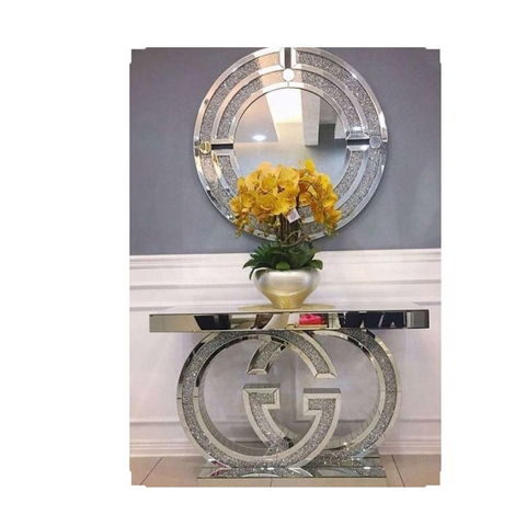 Yüksek kaliteli aynalı ezilmiş kristal oturma odası mobilya kavisli yan gümüş cam konsol Entryway tabloları